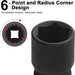 Optimize your toolkit with the Jetech 1/2-Inch Drive 24mm Deep Impact Socket, engineered for durability and precision. This metric socket features a robust 6-point design, crafted from heat-treated Chrome Molybdenum (Cr-Mo) alloy steel, renowned for its superior strength, ability to withstand high temperatures, and enhanced corrosion resistance. Unlike traditional chrome vanadium sockets, our Cr-Mo impact socket is built to absorb greater impact forces, making it an ideal choice for heavy-duty applications. Through a meticulous manufacturing process that includes cold forging and heat treatment, this socket boasts improved performance characteristics such as increased hardness, wear resistance, and an extended lifespan. Its extra depth provides ample space to accommodate longer bolts, making it versatile for a wide range of tasks. Additionally, the radius corner design ensures that the force is distributed more evenly across the socket wall, significantly reducing wear on both the socket and fasteners, thereby prolonging their service life. Finished with a black phosphating coating, this socket offers exceptional corrosion and wear resistance, ensuring it remains a reliable tool in your arsenal for years to come. Jetech, a brand trusted by professionals across more than 60 countries, continues its commitment to offering high-quality, industrial-grade tools since the early 2000s. Enhance your efficiency and precision on the job with Jetech's expertly designed tools, a testament to our dedication to excellence.