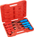 Screwdriver Set: Includes slotted and Phillips sizes ST4-75, ST5-100, ST6-25, ST6-150, and ST8-150, neatly stored in a durable red case.